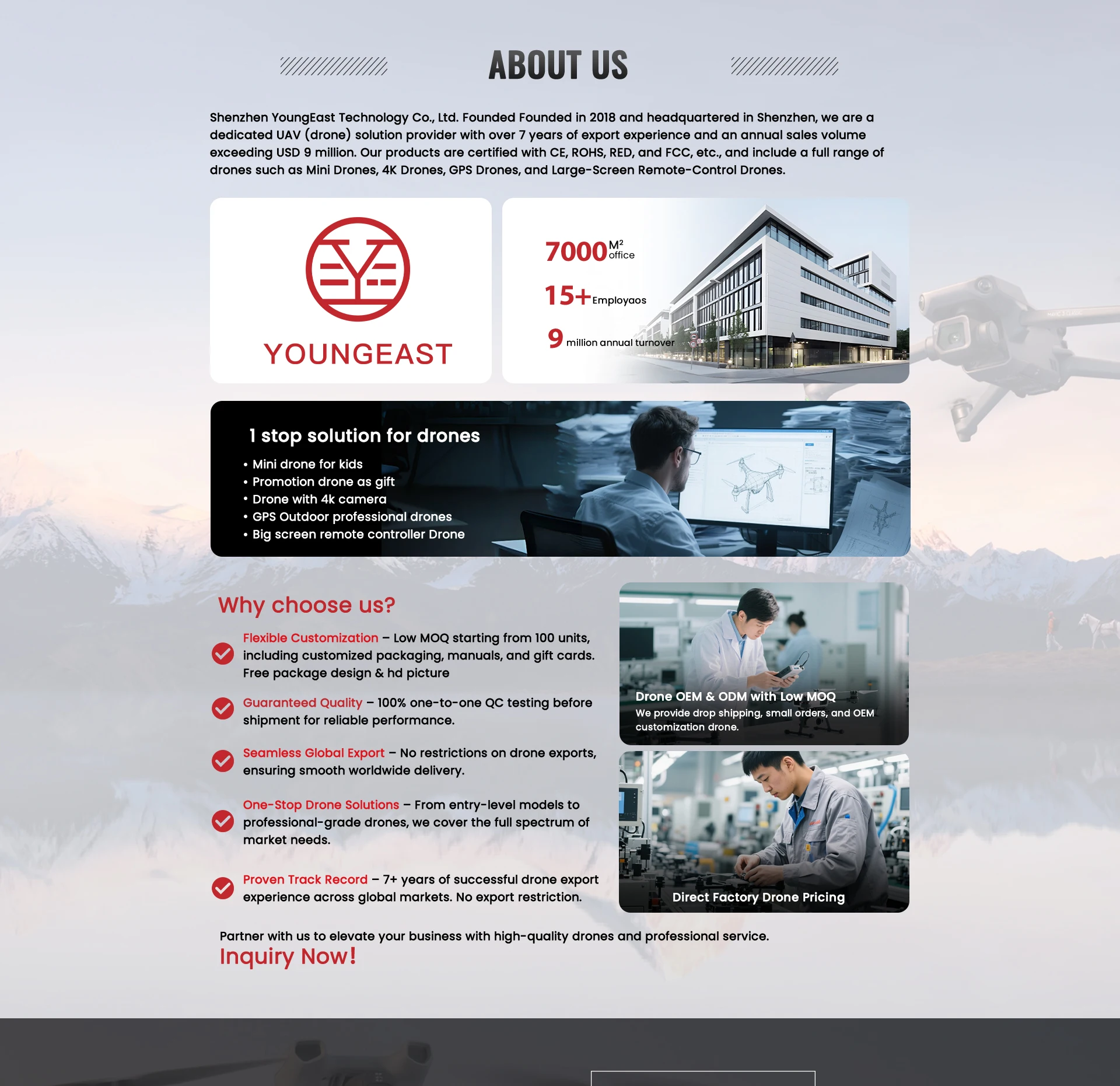 Prodotti principali: Droni RC, galssai intelligenti, orologio intelligente, servizio personalizzato